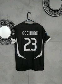 This Real Madrid away jersey features David Beckham’s name and iconic number 23 on the back. A timeless piece for football fans and collectors, it’s perfect for showing support and style.