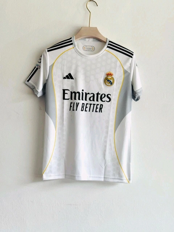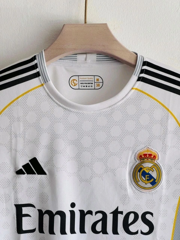 Show your support for Jude Bellingham and Real Madrid with the official Real Madrid Home Jersey – Bellingham #5 (White). Designed in the club’s iconic all-white look with subtle detailing, this jersey features Bellingham’s name and number on the back along with the Real Madrid crest and adidas logo on the front. Made with lightweight, breathable AEROREADY fabric, it keeps you cool and comfortable whether you’re on the pitch or in the stands. A must-have for any true Madridista.