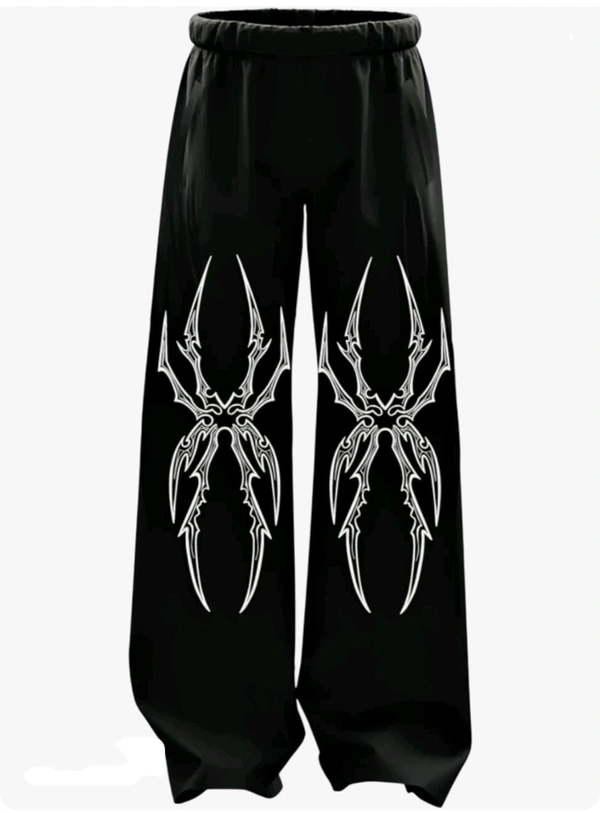 These pants are designed in a relaxed wide-leg fit with an elastic waistband for all-day comfort. The standout feature is the bold white tribal spider graphics printed on the front of both legs, giving them a striking and edgy streetwear appeal. Made to balance both comfort and style, they’re perfect for casual wear, urban outfits, or adding a gothic-inspired statement piece to your wardrobe.