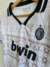 Maldini 3 AC Milan special edition jersey, likely from the 2023-2024 or 2024-2025 season, potentially a "fourth kit" or a "concept kit". Some sources suggest it might be a special edition jersey featuring Paolo Maldini, indicated by embroidery. The jersey features the AC Milan crest and the "bwin" sponsor logo prominently on the front.